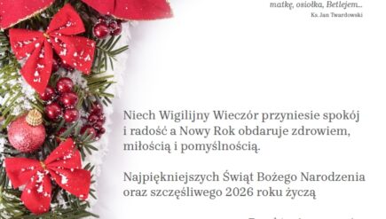 I pomyśl, jakie to dziwne,że Bóg miał lata dziecinne,matkę, osiołka, Betlejem…Ks. Jan Twardowski Niech Wigilijny Wieczór przyniesie spokój i radość…