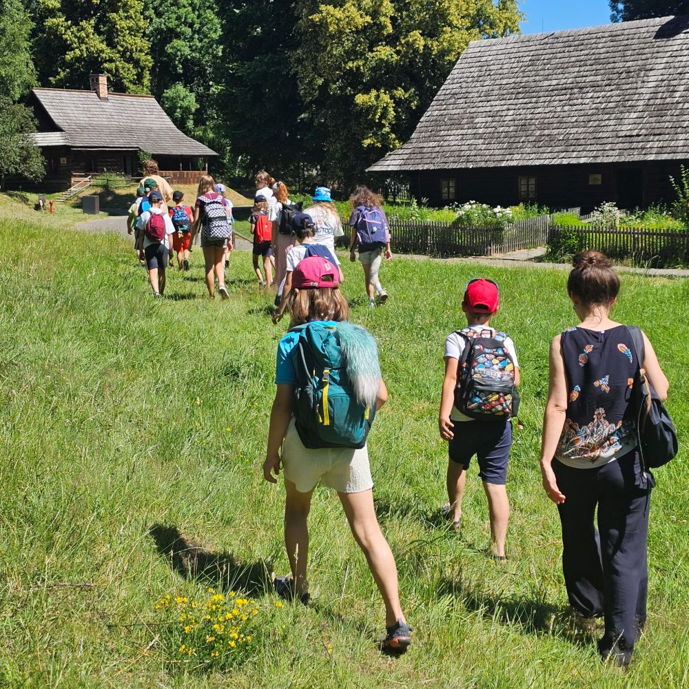 Środa upłynęła pod znakiem wycieczki. Odwiedziliśmy Skansen w Chorzowie, gdzie dzieci mogły zobaczyć, jak wyglądało życie na śląskiej wsi – od wnętrz dawnych domostw po narzędzia codziennego użytku. Ze względu na upał nie mogło zabraknąć ochłody – po zwiedzaniu czekał na nas plac wodny, który okazał się prawdziwym hitem dnia. Zabawa w wodzie pozwoliła wszystkim się zrelaksować i schłodzić w gorące, letnie popołudnie.