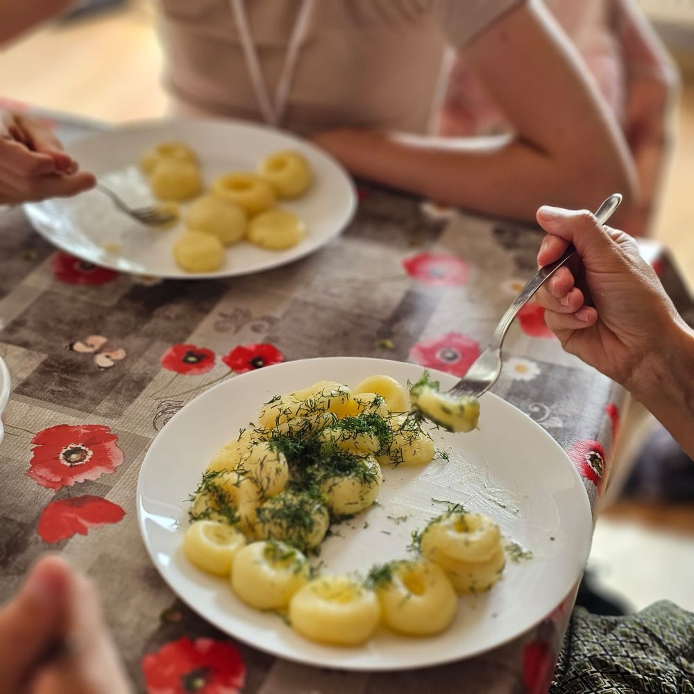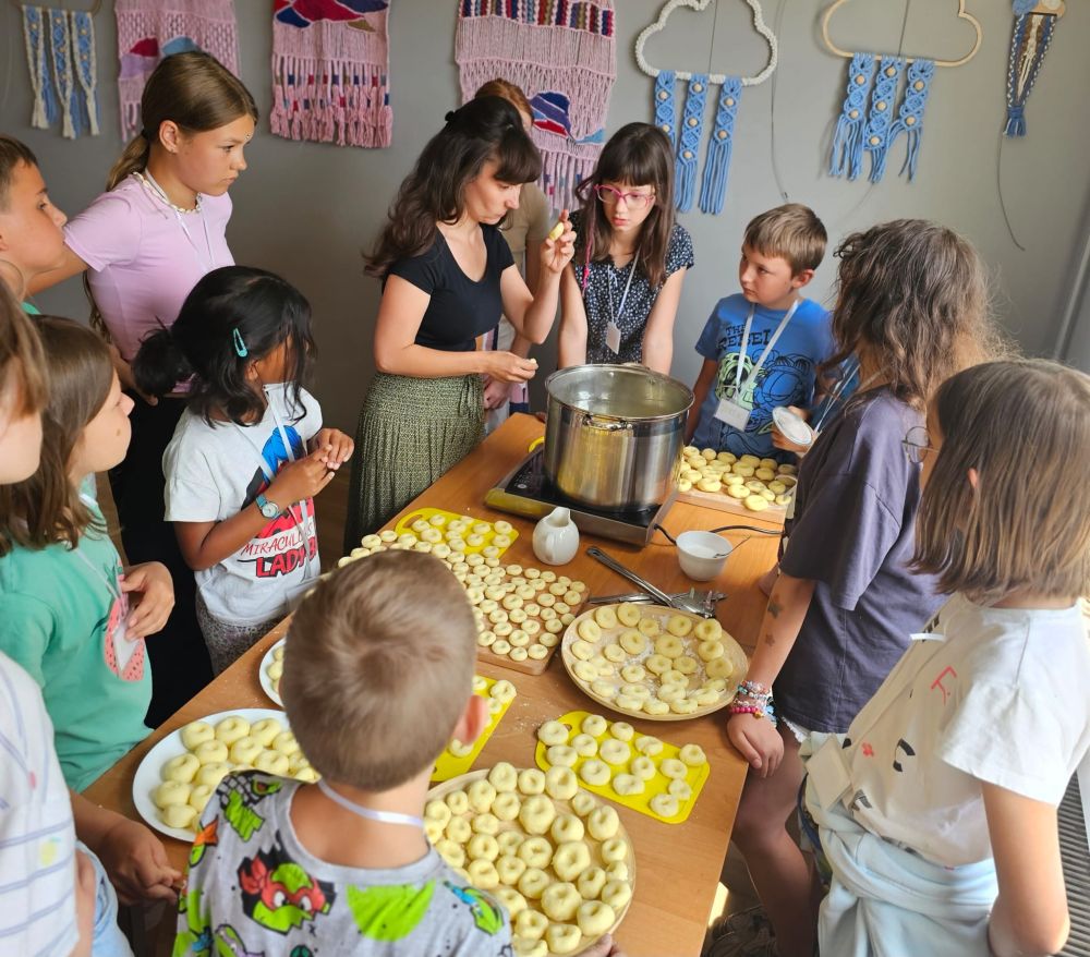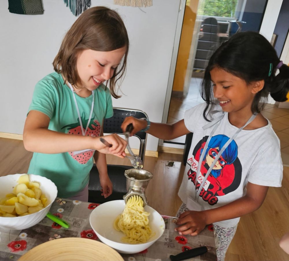 Piątek upłynął bardzo smakowicie – odbyły się warsztaty kulinarne, na których dzieci uczyły się przygotowywać tradycyjne kluski śląskie. Wspólne gotowanie było pełne radości, śmiechu i… mąki! Na zakończenie tygodnia, dla wyciszenia i odprężenia, wszyscy wzięli udział w zajęciach jogi – spokojne ćwiczenia i relaksacyjna atmosfera były idealnym zwieńczeniem intensywnego tygodnia.