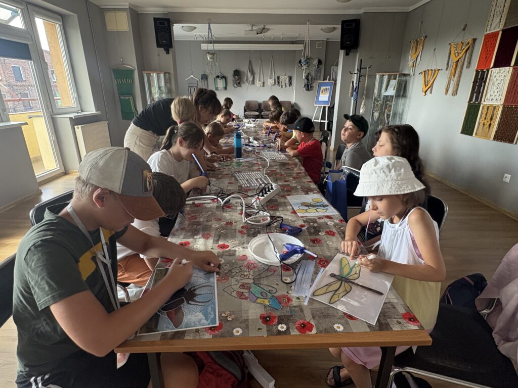 Środa upłynęła pod znakiem kreatywności. Na warsztatach plastycznych powstały przepiękne witraże z owadami, które mieniły się w słońcu. Następnie wybraliśmy się na Wodny Plac Zabaw.