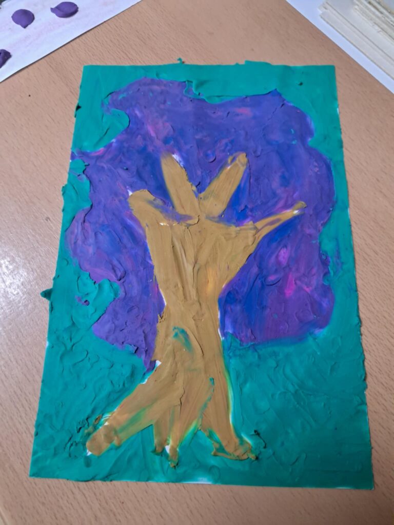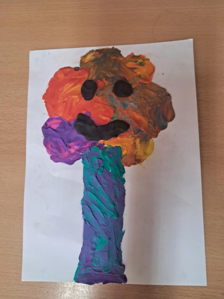 „Malowaliśmy” obraz za pomocą plasteliny dzięki instruktażu Pani Reni