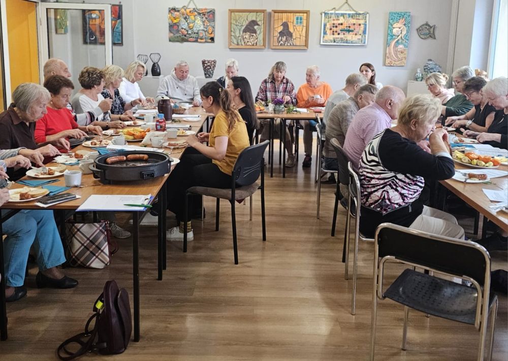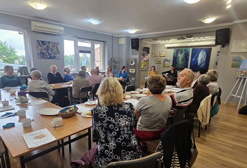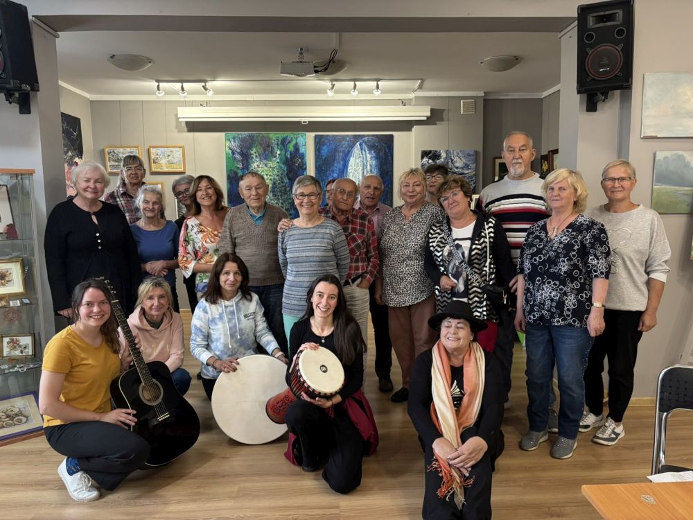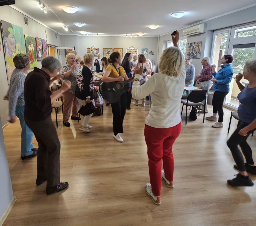 Choć deszcz pokrzyżował plany ogniska w Parku Doliny Ślepiotki, wcale nie przeszkodził nam w świetnej zabawie! Spotkaliśmy się w sali MDK, gdzie zamiast płomieni ogniska rozgrzały nas muzyka i wspólny śpiew Gościnny występ naszych artystek sprawił, że sala szybko wypełniła się energią i radością Piosenki turystyczne przy akompaniamencie gitary przypomniały nam klimat wakacyjnych biesiad. Było radośnie, głośno i rodzinnie – dokładnie tak, jak lubimy!