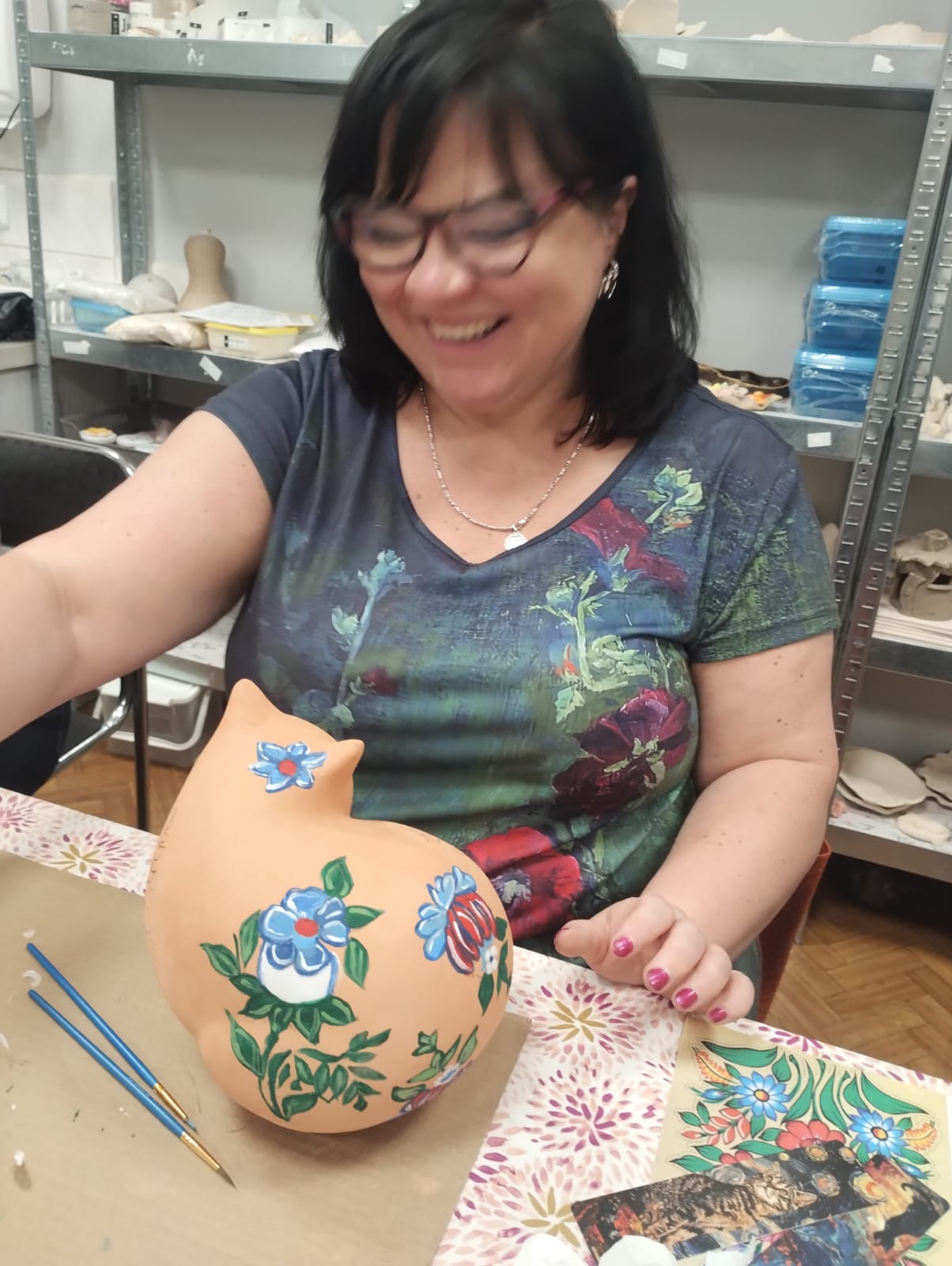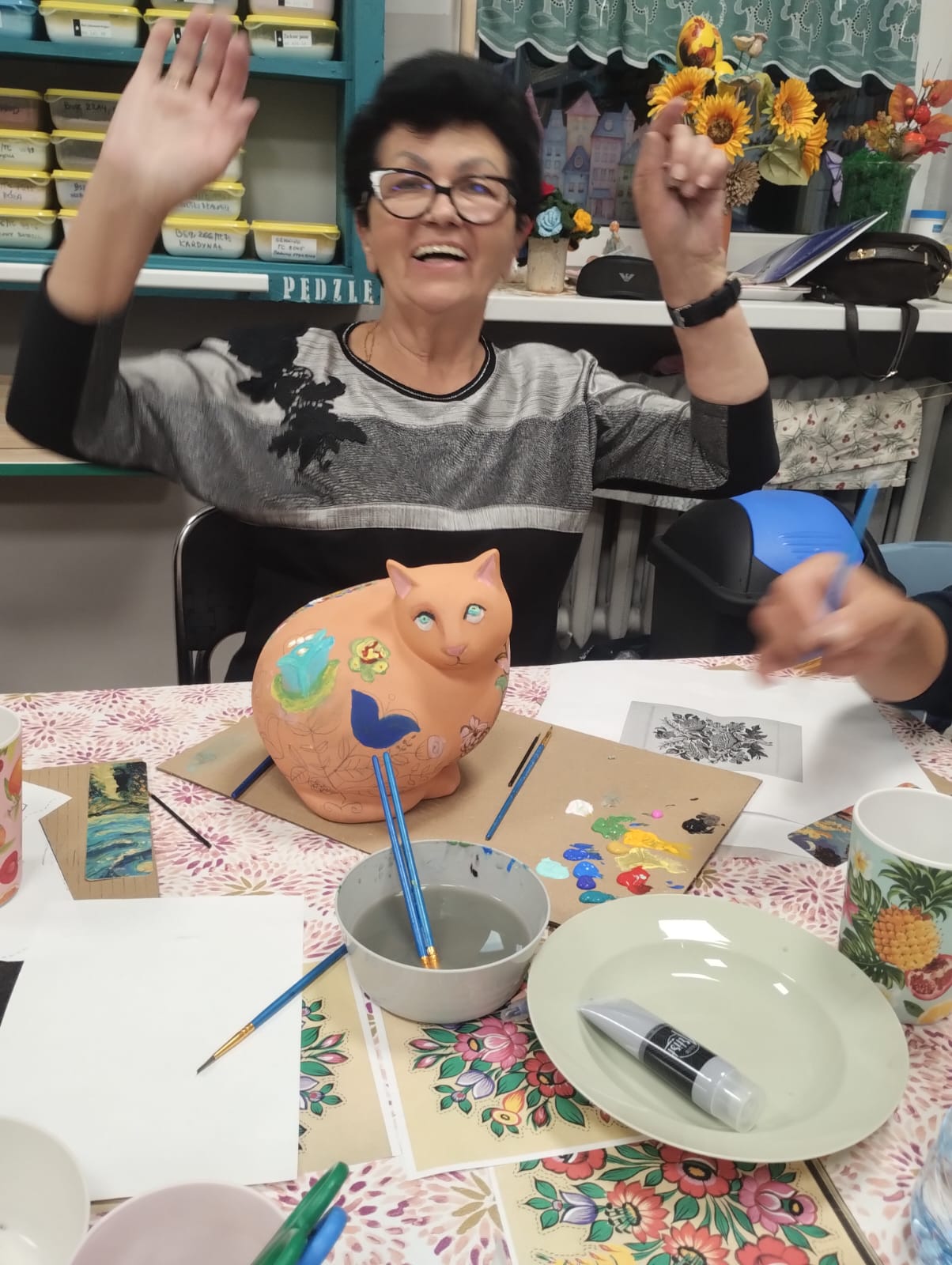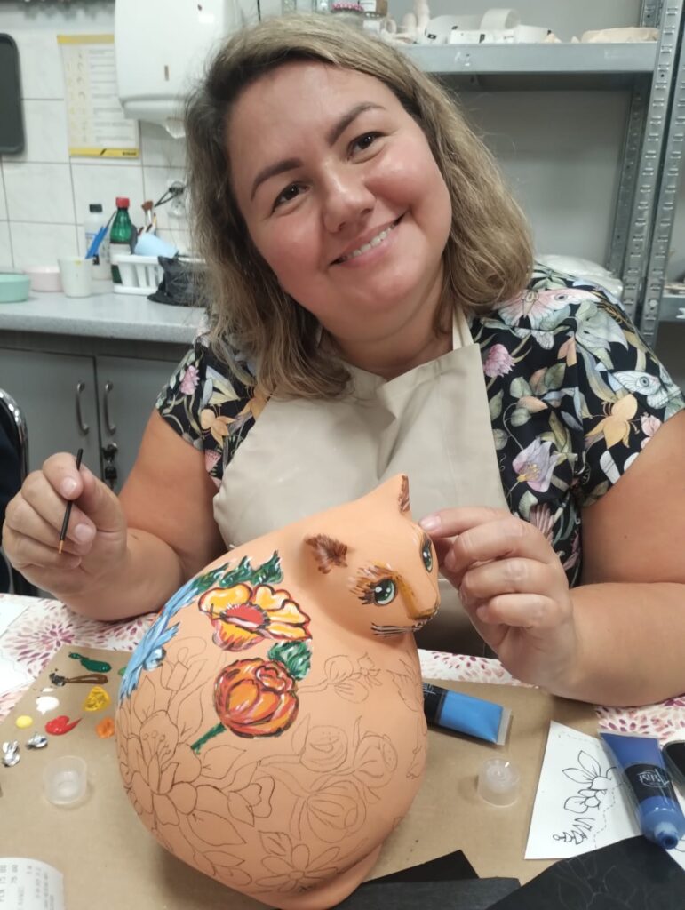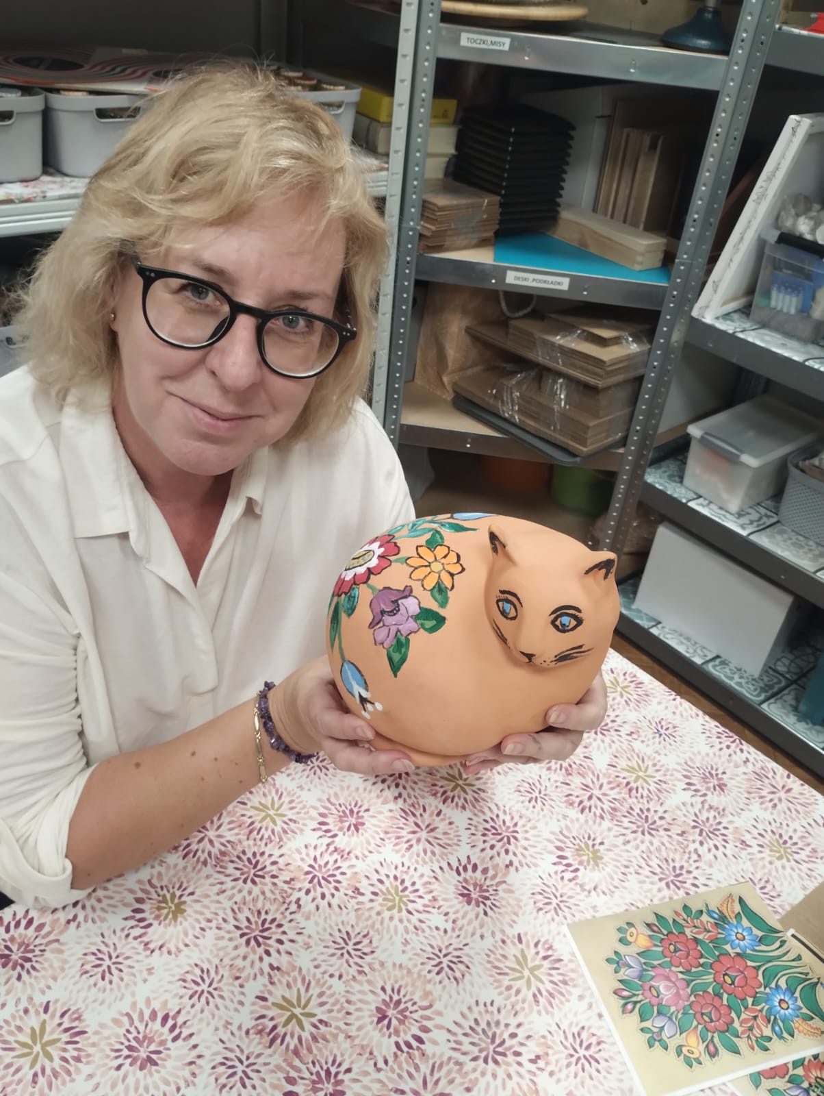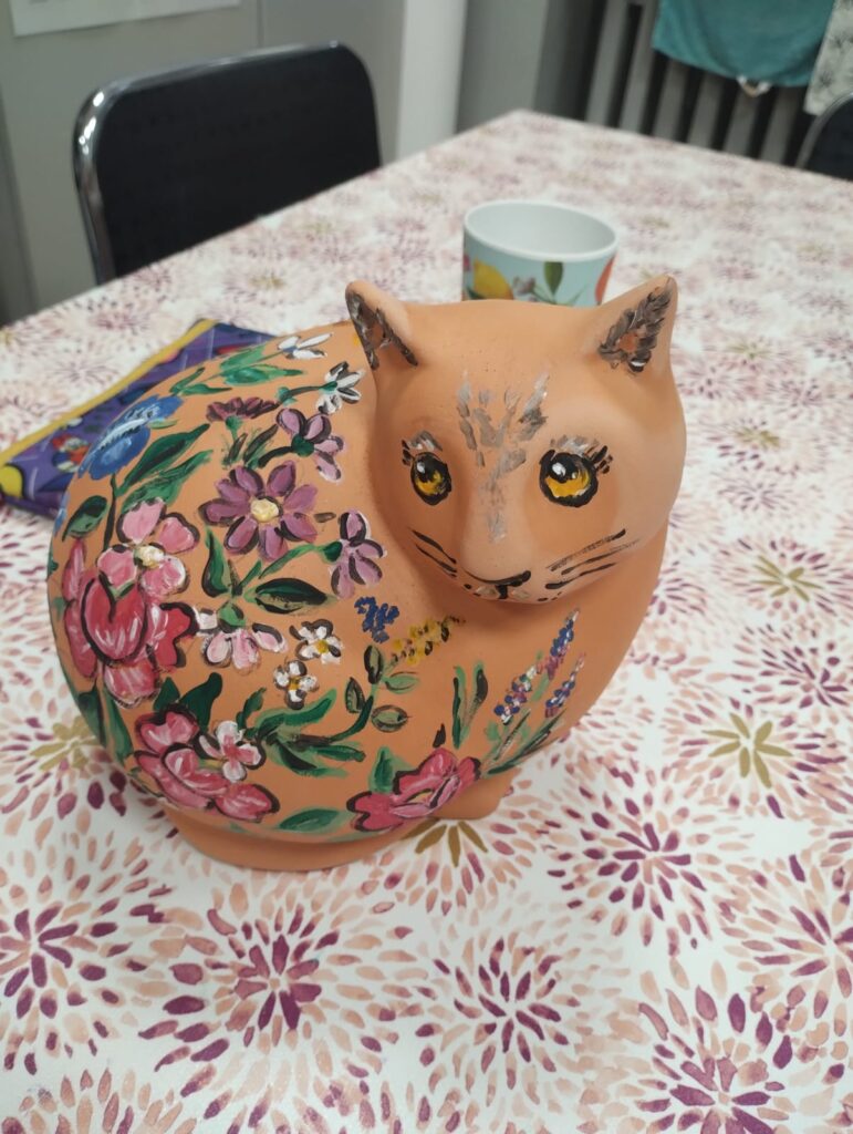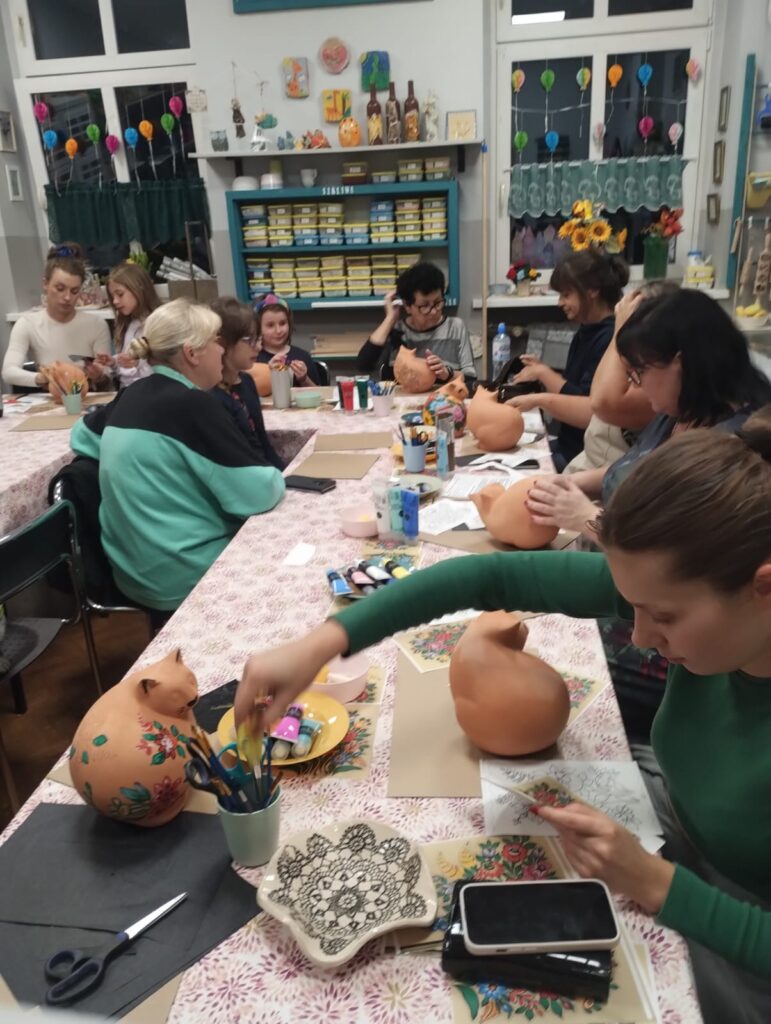 Dziś nasze ceramiczne koty rozkwitły jak zalipiańskie chaty! Podczas warsztatów każdy uczestnik stworzył swojego wyjątkowego kota w motywach kwiatowych inspirowanych malarstwem z Zalipia. Efekt? Prawdziwa feeria barw i wzorów – każdy kot ma swój charakter i duszę.
