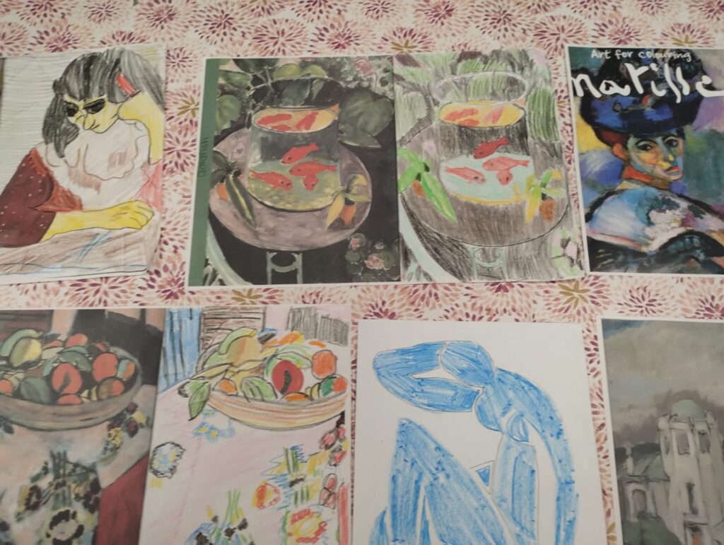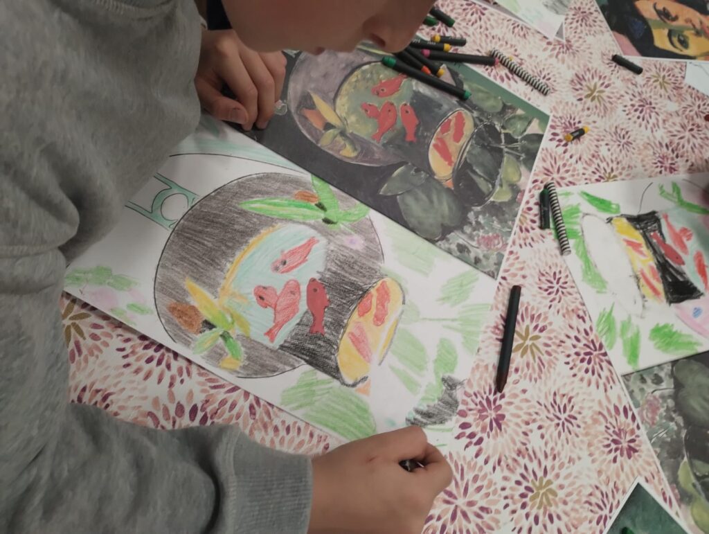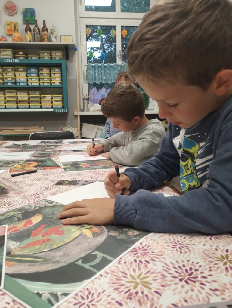 Pod okiem instruktora Pani Anita Kowal dzieci poznawały twórczość Henriego Matisse’a i odkrywały jego barwny świat pełen kształtów i kolorów. Powstały piękne, kolorowe prace pełne wyobraźni i radości tworzenia!