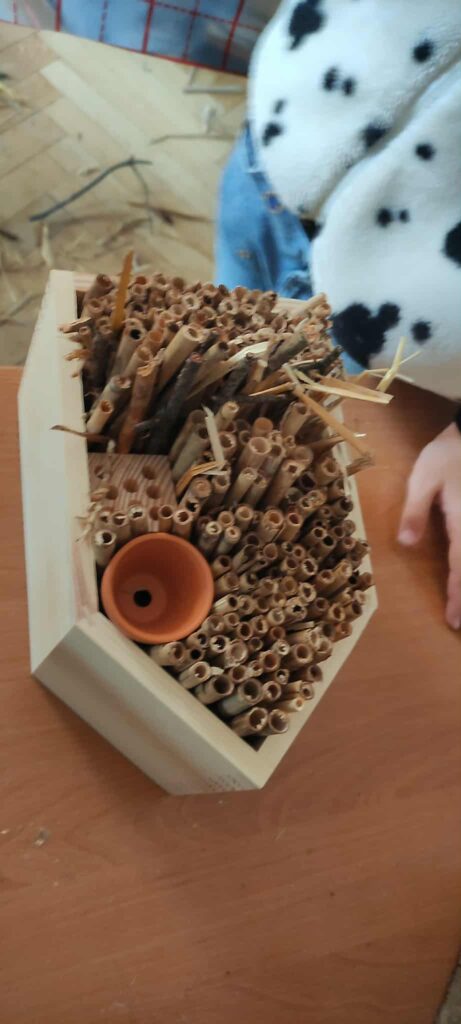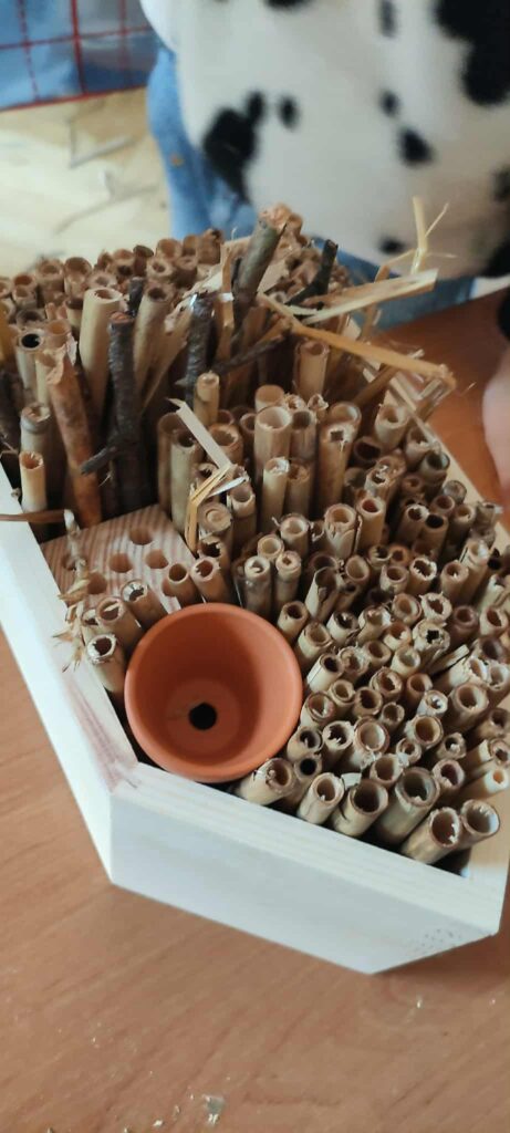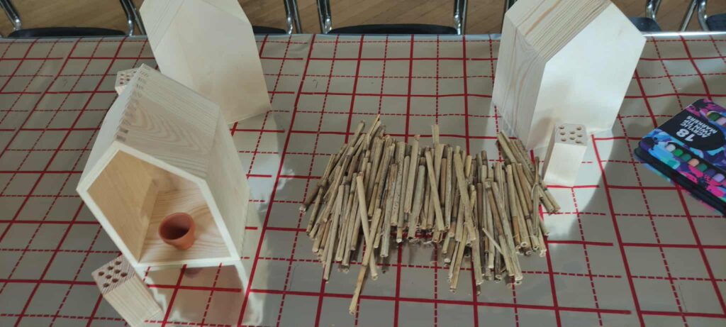 Tym razem, w ramach zajęć z projektu Zielonego Budżetu m. Katowice, pt. „Co w trawie piszczy. Kontynuacja” uczestnicy stworzyli domki dla owadów, które szukają schronienia na okres jesieni i zimy.