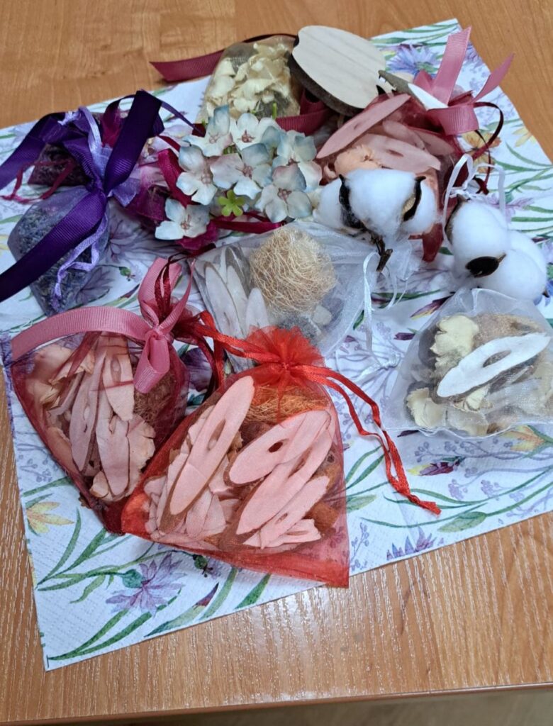 Podczas zajęć uczestnicy poznali różnorodne składniki używane do komponowania naturalnych zapachów oraz ich właściwości. Każdy mógł dobrać odpowiednie połączenie aromatów według własnych preferencji, tworząc niepowtarzalne, pachnące woreczki do szafy.