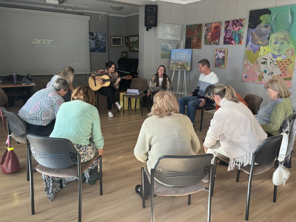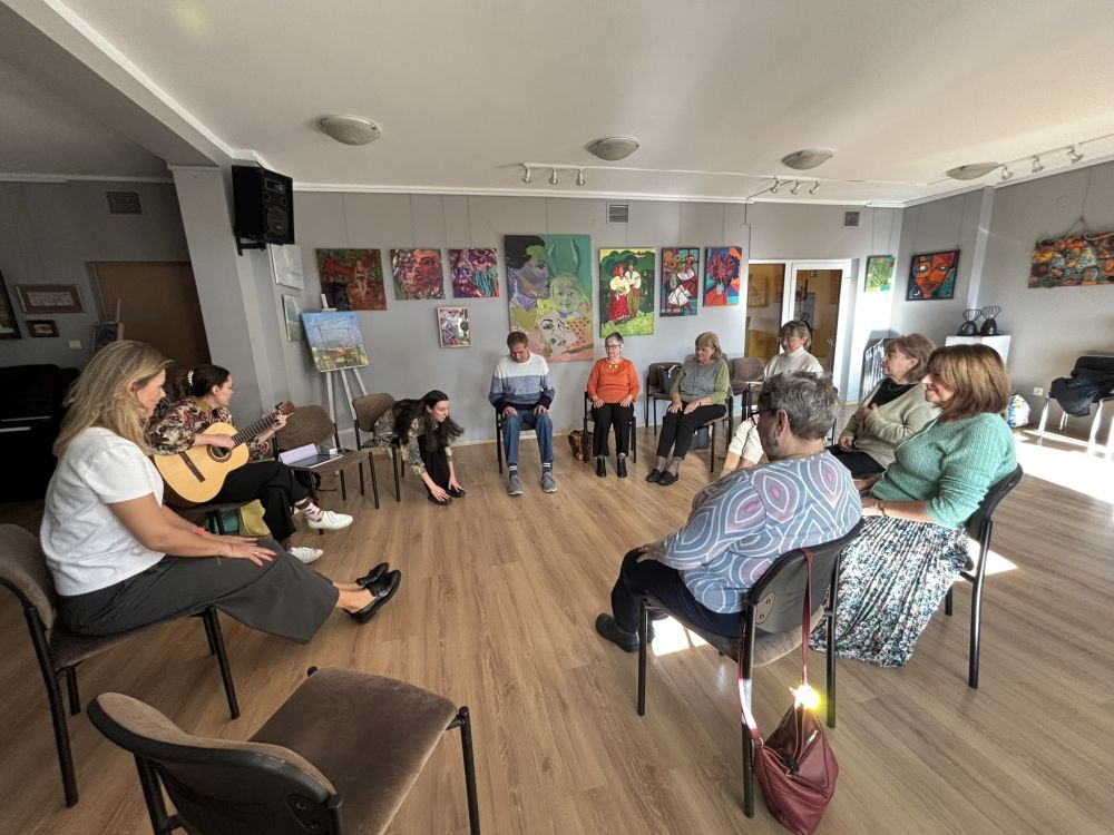 Druga część wydarzenia miała charakter warsztatowy — muzykoterapia z elementami relaksacji wprowadziła wszystkich w atmosferę wyciszenia i regeneracji, jednocześnie zapewniając sobie dodatkową dawkę ruchu.