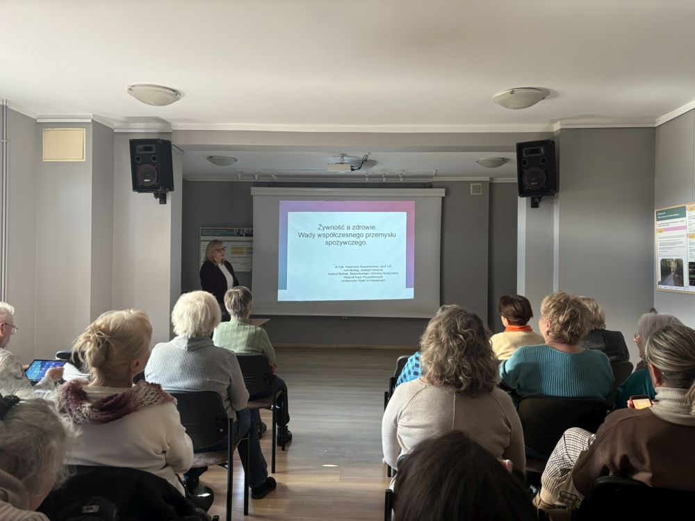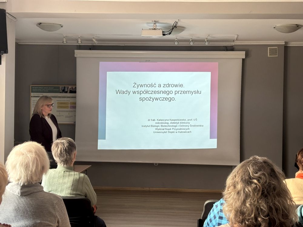 Po wernisażu odbył się wykład prof. Katarzyny Kasperkiewicz z Wydziału Nauk Przyrodniczych Uniwersytetu Śląskiego pt. „Żywność a zdrowie”. Prelegentka w przystępny sposób omówiła wpływ diety na funkcjonowanie organizmu, zwracając uwagę na znaczenie świadomych wyborów żywieniowych, pochodzenie produktów oraz rolę środowiska naturalnego w kształtowaniu jakości żywności. Wykład zakończył się krótką sesją pytań, podczas której uczestnicy mieli okazję pogłębić swoją wiedzę.