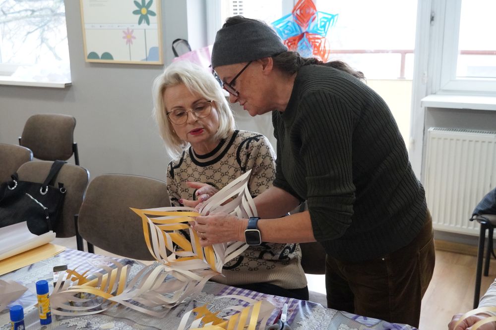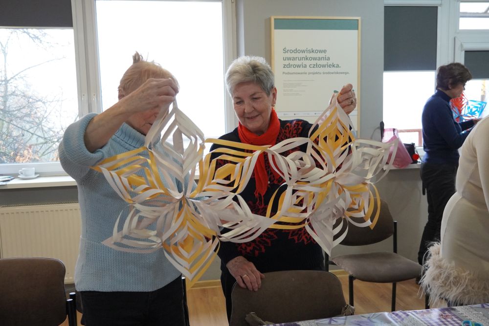Grudzień w Klubie Aktywnego Seniora „Każdy może” zaczęliśmy naprawdę kreatywnie! Dzisiejsze warsztaty robienia gwiazd z papieru okazały się świetną zabawą… choć nie ukrywajmy – było to nie lada wyzwanie manualne. Składanie, zaginanie, dopasowywanie – chwilami trzeba było się dobrze nagimnastykować! Ale efekt? Piękne, lekkie i bardzo świąteczne ozdoby, które już wkrótce zawisną w oknach naszych Seniorów. Każda gwiazda wyszła trochę inna, a wszystkie razem zrobiły naprawdę imponujące wrażenie.