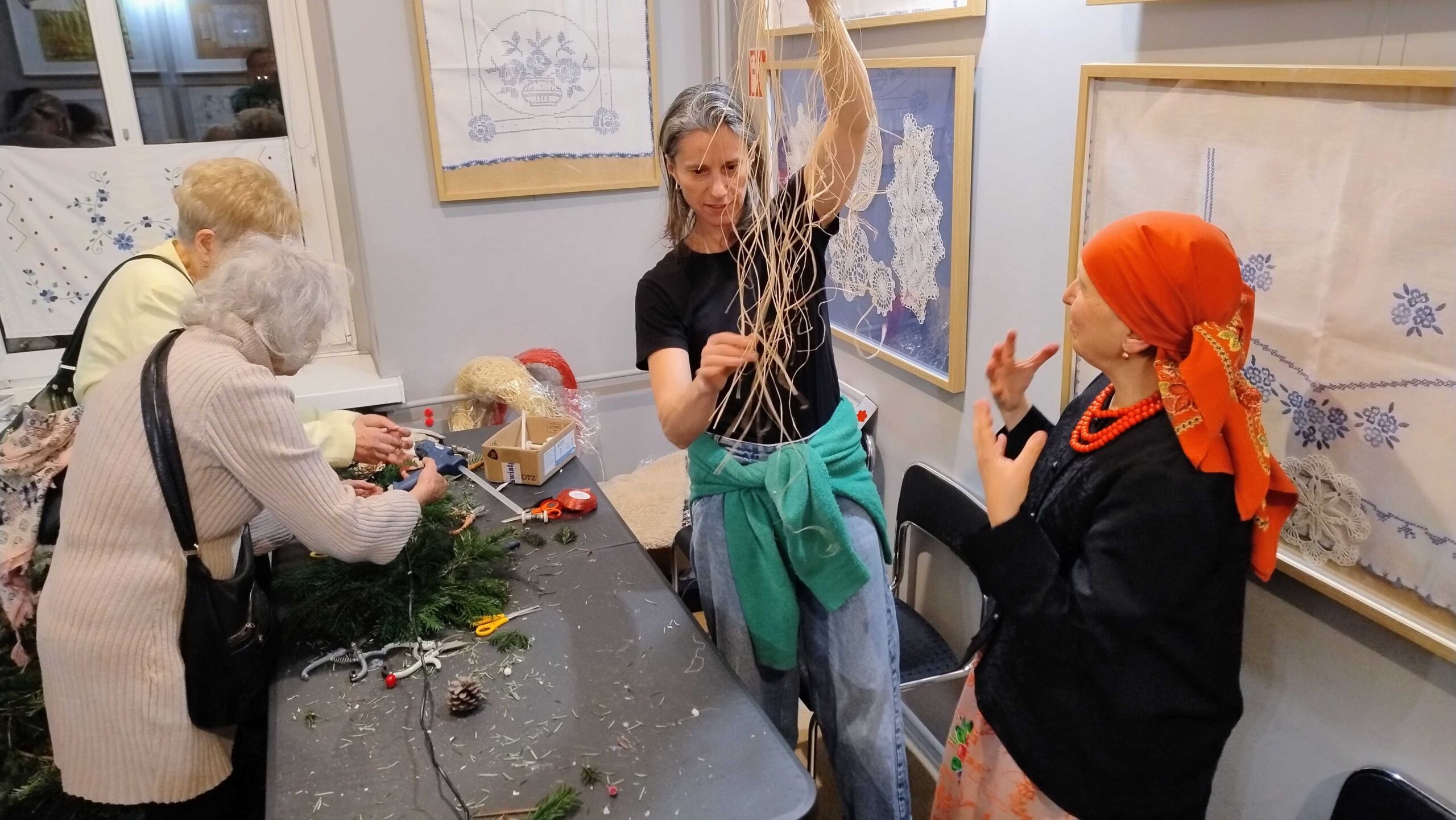 Zobaczyliśmy też wystawy: Śląska Tkanina domowa z oprowadzaniem kuratorskim pracowni Forbotka; Serce Matki – wystawę rysunków i eksponatów z kolekcji Eweliny Szuścik oraz Ikony, kaligrafia i miniatorstwo – otwartej pracowni malowania ikon.