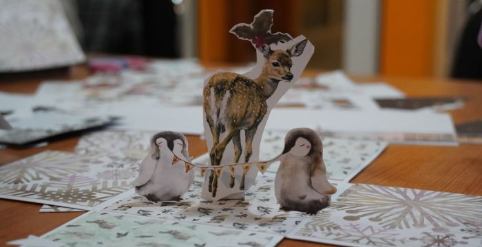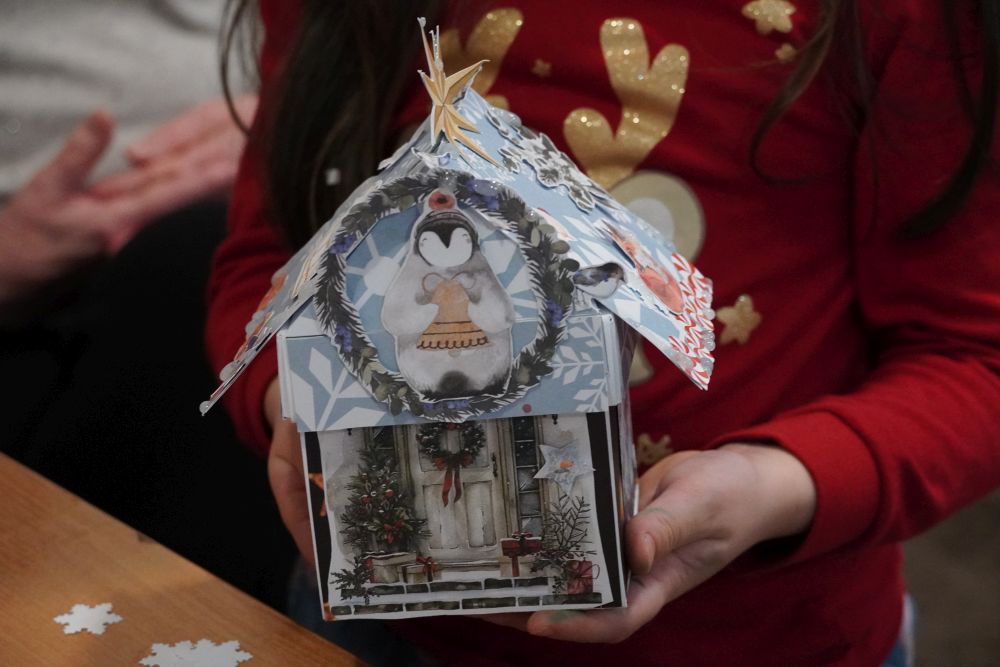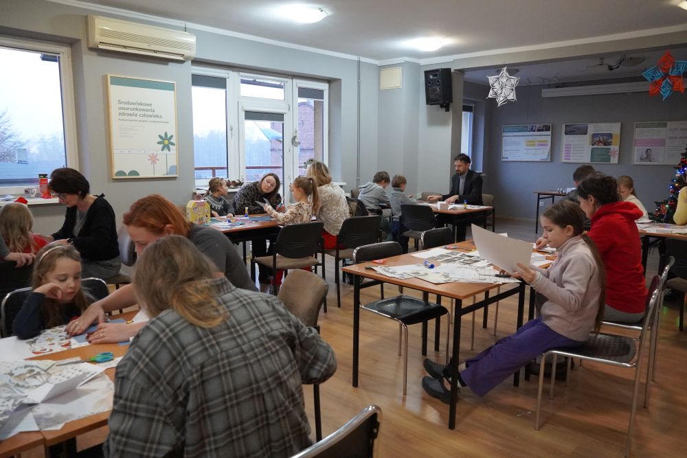 Tegoroczne Mikołajki w Miejskim Domu Kultury upłynęły pod znakiem rodzinnej twórczości. W świątecznie udekorowanej sali odbyły się bezpłatne warsztaty papieroplastyczne, podczas których uczestnicy tworzyli kartonowe Chatki Mikołaja – pomysłowe pudełka upominkowe, idealne na drobne prezenty. Od pierwszych minut widać było ogromne zaangażowanie dzieci i dorosłych. Najmłodsi chętnie sięgali po kolorowe kartony, a rodzice wspierali ich w precyzyjnym składaniu elementów. Zajęcia prowadzone były krok po kroku, ale każdy uczestnik miał pełną swobodę w dekorowaniu swojego pudełka. Dzięki temu powstały chatki w najróżniejszych stylach — od klasycznych, czerwono-białych, po fantazyjne, ozdobione brokatem, gwiazdkami i miniaturowymi choinkami.