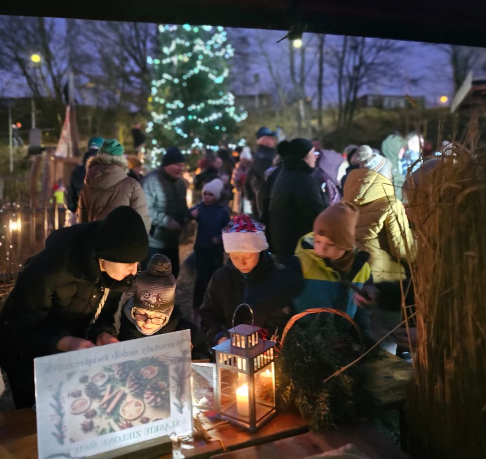 Wspólne dekorowanie dzielnicowej choinki, ciepła herbata w ramach akcji „Przyjdź z kubkiem”, warsztaty słomianych oraz drewnianych ozdób choinkowych, rozmowy o ekologicznych świętach po śląsku, wymiana świątecznych przepisów oraz kolędowanie przy muzyce na żywo stworzyły niepowtarzalną atmosferę.