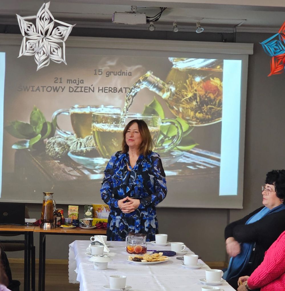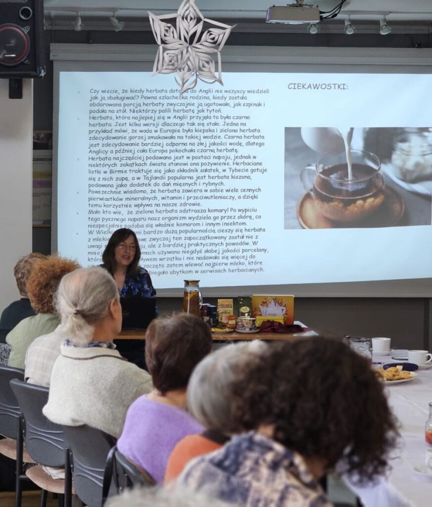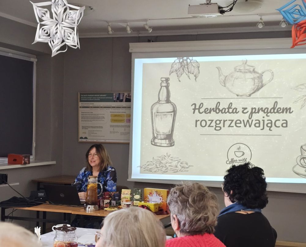 Pierwsze noworoczne spotkanie w Klubie Aktywnego Seniora „Każdy może” zostało poświęcone historii i tradycjom parzenia herbaty na świecie oraz właściwościom zdrowotnym poszczególnych jej rodzajów. Warsztaty poprowadziła Pani Barbara Murek, która w ciekawy i przystępny sposób przybliżyła uczestnikom herbaciane zwyczaje z różnych kultur oraz opowiedziała o wpływie herbaty na zdrowie i dobre samopoczucie .Prelekcji towarzyszyła pyszna, zimowa herbata przygotowana przez prowadzącą, która idealnie wpisała się w temat spotkania i skutecznie rozgrzewała w chłodny styczniowy dzień.