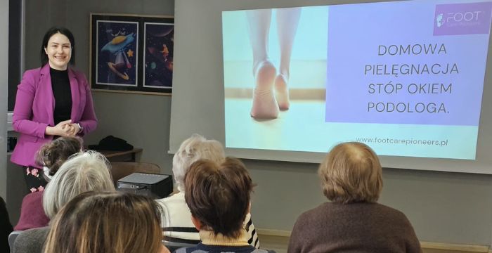 W pierwszy lutowy wtorek w naszym Klubie Aktywnego Seniora zawitała Pani Olga Legkoszkur – podolog, która poprowadziła prelekcję poświęconą zdrowiu i pielęgnacji stóp. Pani Olga w przystępny i ciekawy sposób opowiedziała o najczęstszych problemach stóp, metodach zapobiegania stanom chorobowym oraz zasadach codziennej pielęgnacji i higieny. Seniorzy dowiedzieli się, jak prawidłowo dbać o skórę i paznokcie, jak dobierać odpowiednie obuwie oraz kiedy warto skorzystać z pomocy specjalisty. Spotkanie miało również formę otwartej rozmowy — uczestnicy chętnie zadawali pytania i dzielili się swoimi doświadczeniami.