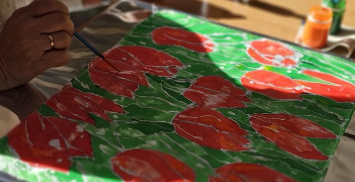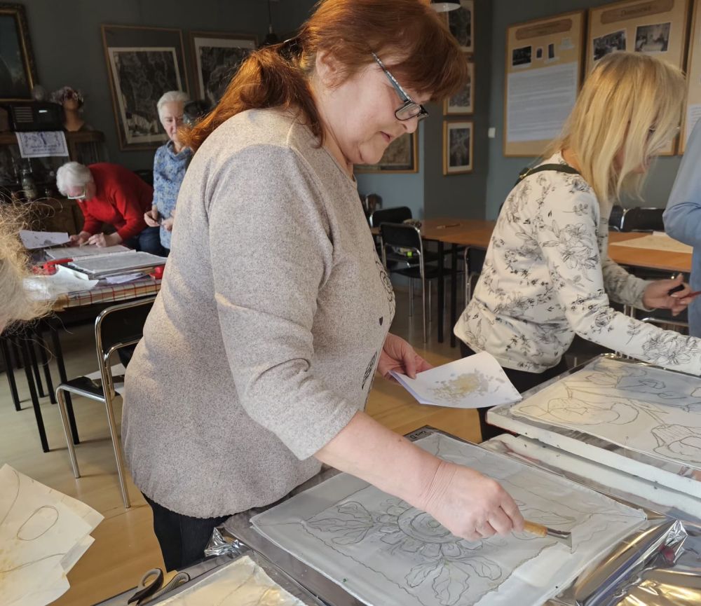 Warsztaty odbyły się w ramach Klubu Aktywnego Seniora „Każdy może”. Atmosfera była wspaniała, a seniorki nie kryły zachwytu – zarówno nad samym procesem tworzenia, jak i nad efektami końcowymi. Każda apaszka była wyjątkowa.